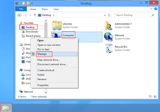 • Buka pada bagian start menu, kemudian klik kanan di My computer kemudian pilih manage.
